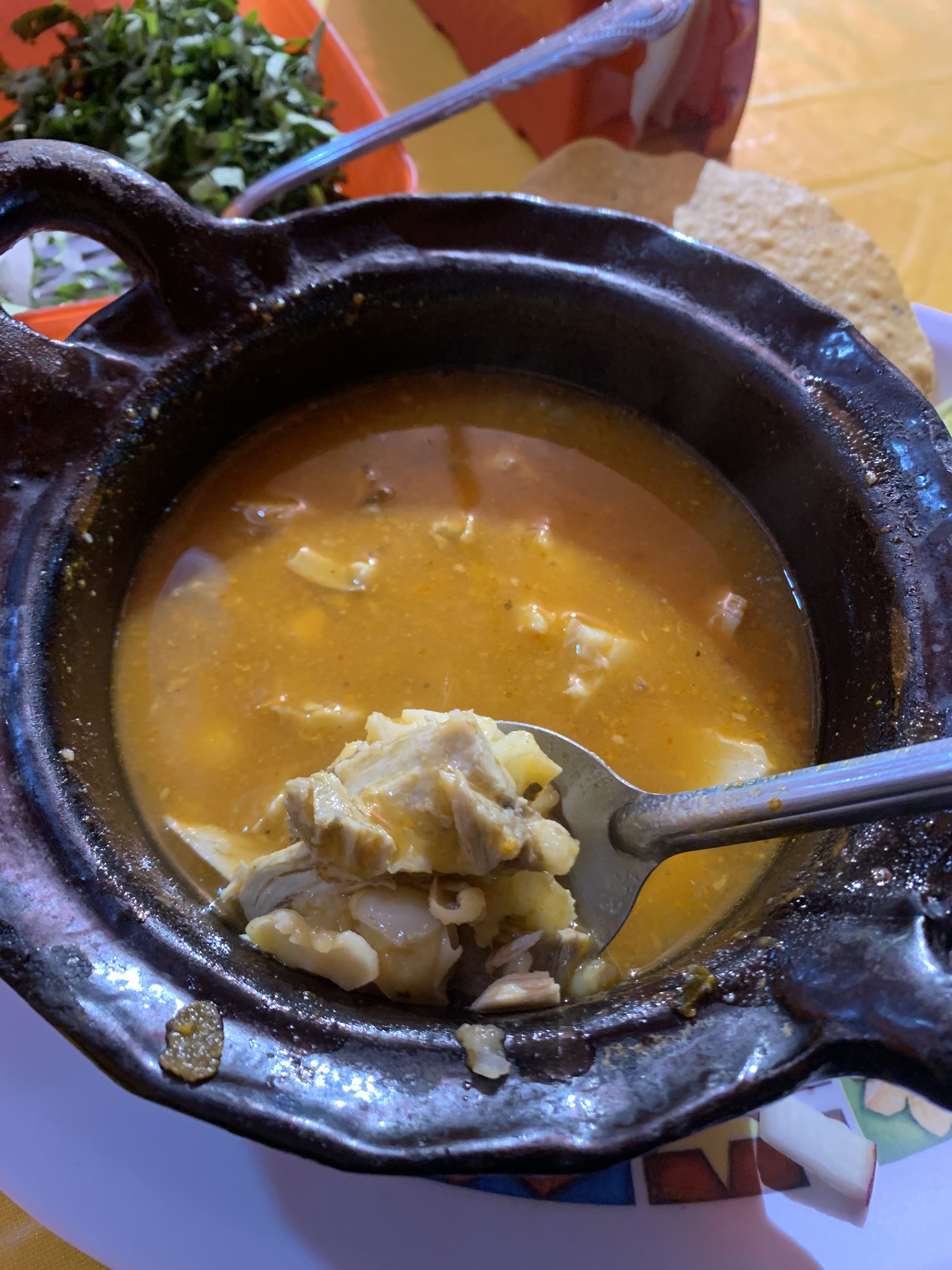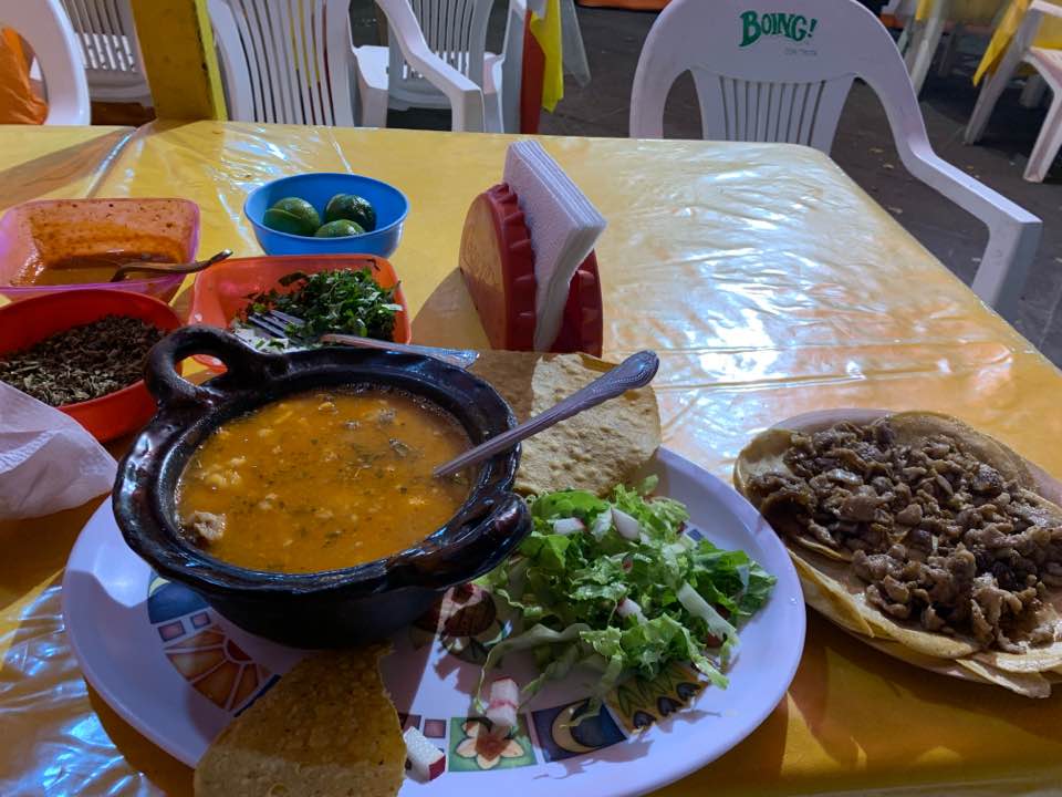 멕시코식 돼지국밥 뽀솔레와 타코를 먹었고 약 만원을 지불했다