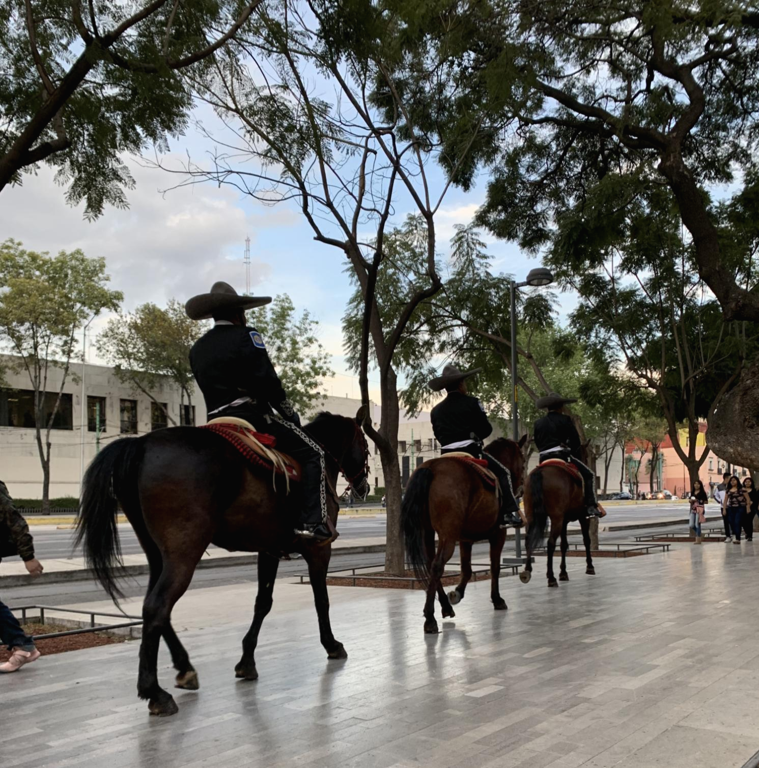 광장에서 말을타고 다니는 경찰아저씨들을 봤는데